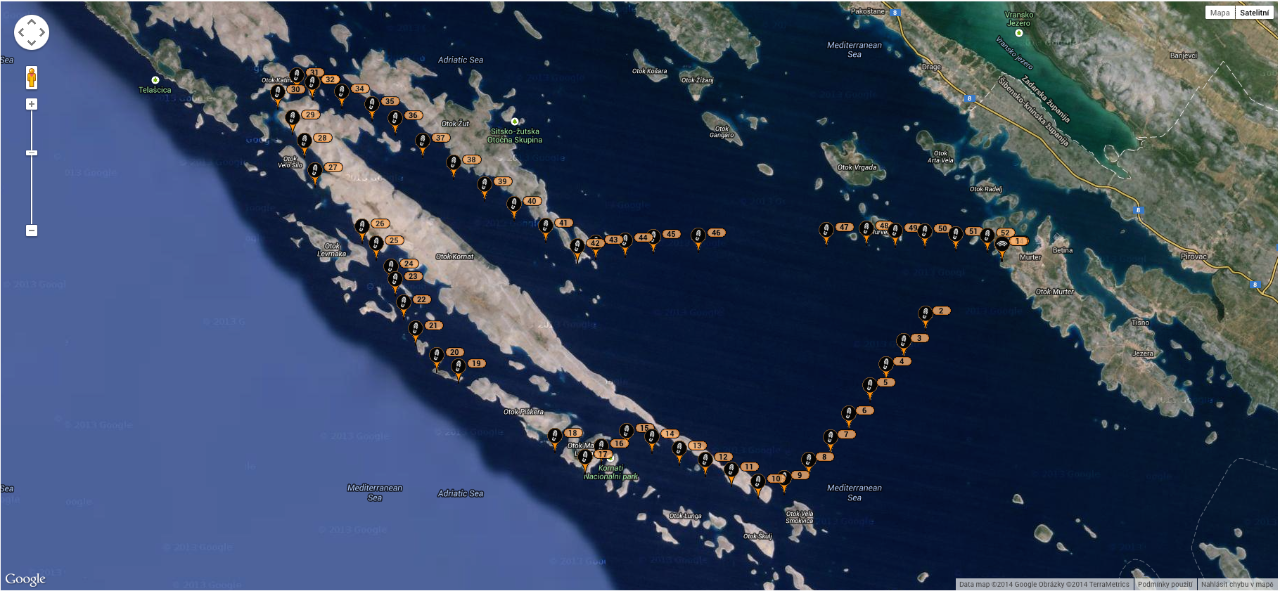 Tento týden jsme se podívali na Kornaty. Tento národní park je pěkný a nehledě na rozjíždějící se sezónu byl relativně klid (dokonce z nás nevybrali žádný poplatek). Bylo sice horko ale na vodě byla pohoda. Snažili jsme se nevylézat z kajaku a pořádně se hydratovat. Ke konci týdne přišla bouřka a tak jsme museli celý program zkrátit na obeplutí Kornat za jeden den. Den před obeplutím jsme zkusili delší přejezd a cestou zpět jsme si užili i vlnky.